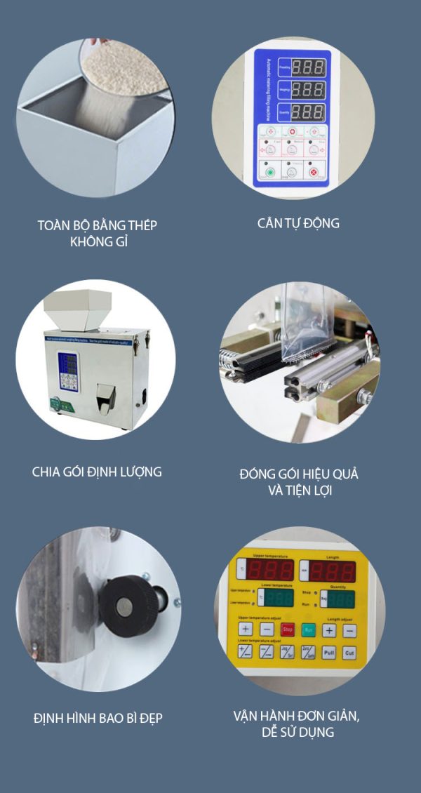 - Hai đầu cân: Mỗi đầu cân có một phễu cân riêng, được trang bị cảm biến lực (loadcell) để đo lường trọng lượng sản phẩm.