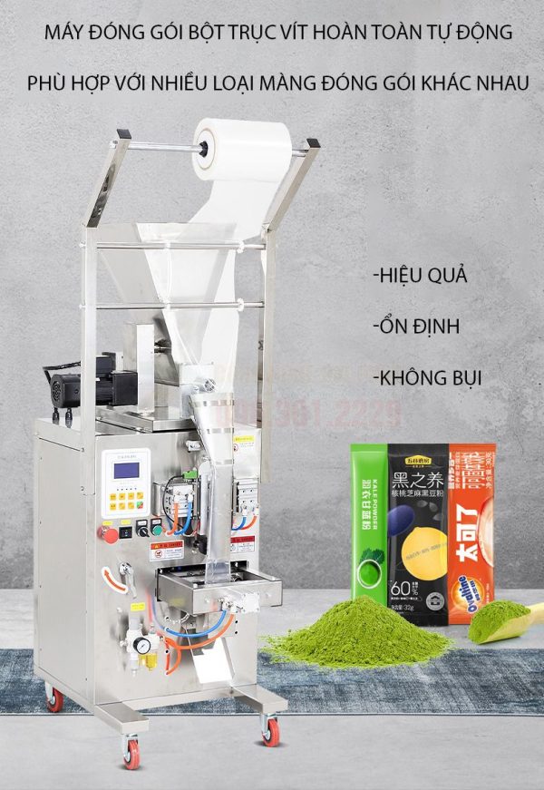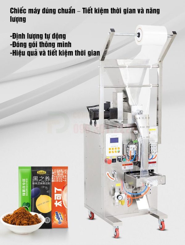 Máy đóng gói trục vít ngang DP01 (ĐGĐP-P64) là một loại máy đóng gói tự động, được thiết kế đặc biệt để định lượng và đóng gói các sản phẩm dạng bột mịn, dễ bay bụi, hoặc có độ dính nhất định (ví dụ: bột mì, bột cà phê, sữa bột, bột gia vị, hóa chất dạng bột…) vào túi. Điểm nổi bật của máy này là sử dụng cơ chế trục vít đặt ngang kết hợp với định lượng theo thể tích hoặc trọng lượng.
