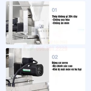 - Hệ thống điều khiển: Máy được trang bị bảng điều khiển PLC và màn hình cảm ứng HMI, cho phép người vận hành dễ dàng cài đặt các thông số như trọng lượng, tốc độ, và kiểm soát toàn bộ quá trình.