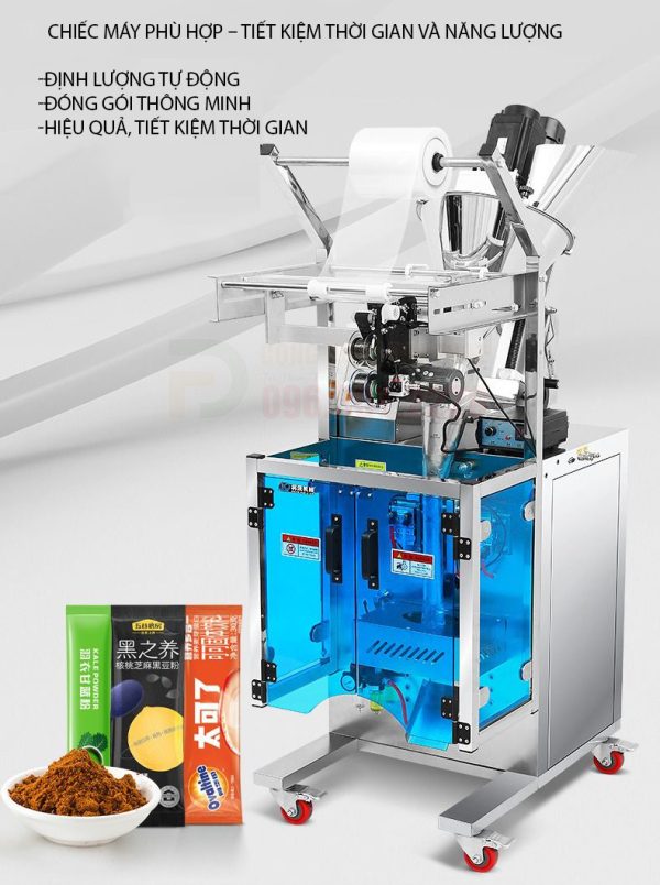 - Bộ phận tạo túi và hàn kín (tích hợp): Sau khi sản phẩm được định lượng và xả xuống, máy sẽ tự động tạo túi từ cuộn màng, hàn kín miệng túi và cắt rời.