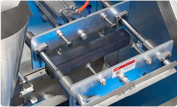 - Hàn miệng túi: Sau khi sản phẩm đã được đưa vào, túi sẽ di chuyển đến bộ phận hàn nhiệt để hàn kín miệng túi.